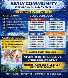 New Wave Swim Technique is proud to serve the Sealy community by helping swimmers and families build lifelong safety, confidence, and comfort in the water. Led by USA Swimming–certified Coach Nemardo Singleton, our program follows a proven approach—Connection first, Comfort second, Confidence third—ensuring every swimmer develops skills that last far beyond the pool.